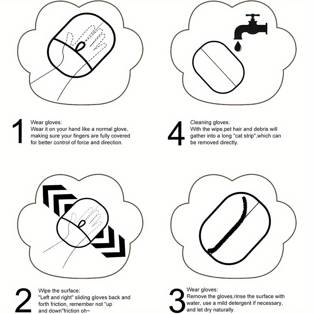4pcs Cat Hair Removal Gloves - Dual Brush Design, Durable & Easy-Clean Home Cleaning Tool, Adjustable Fit Dog Hair Removal Gloves